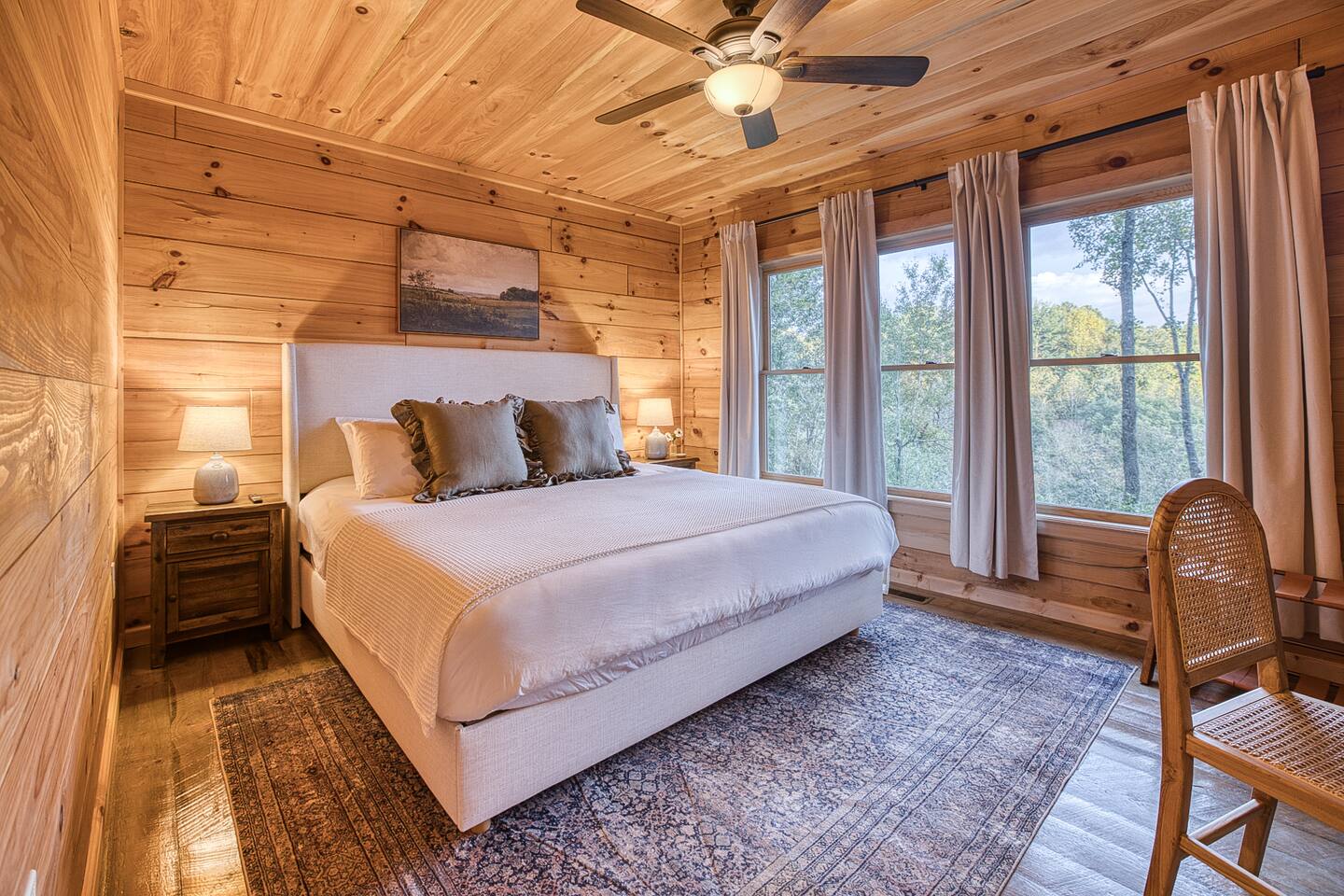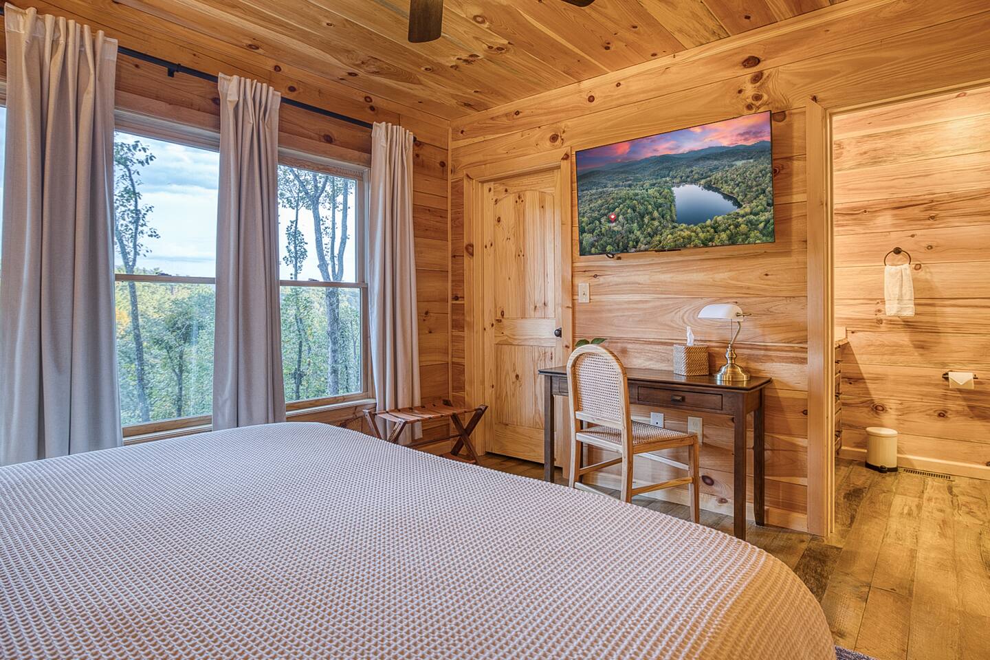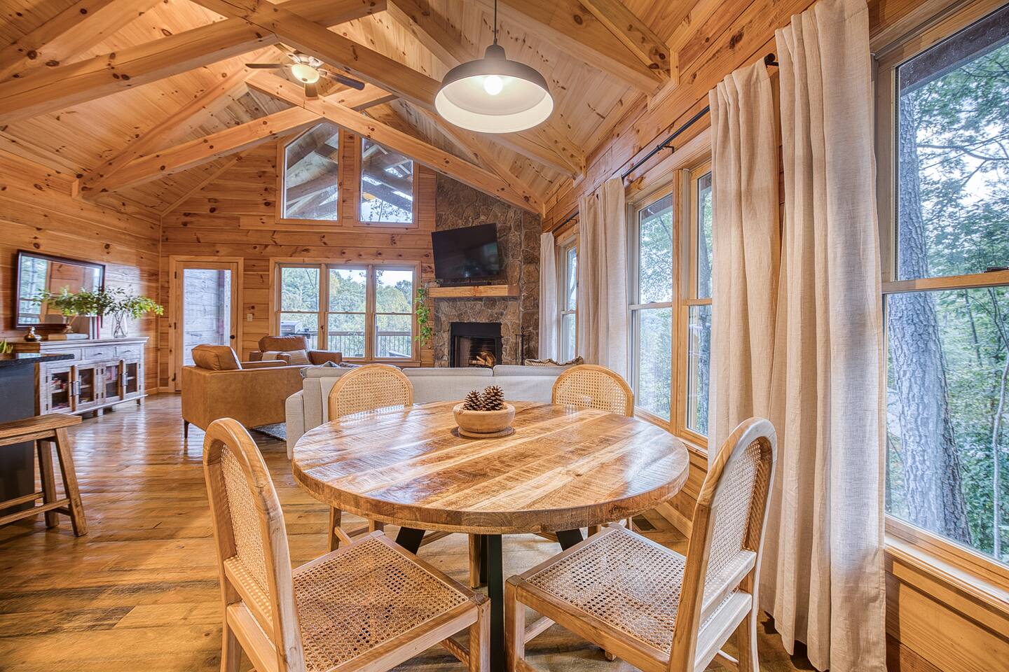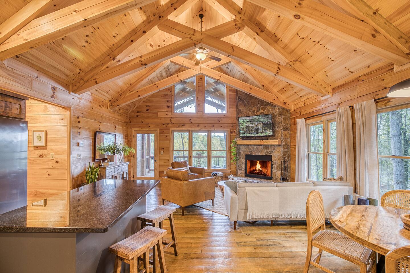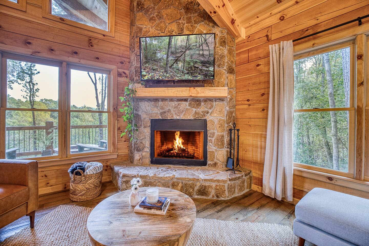 Imagine stepping into a luxurious adults-only mountain retreat, nestled just 1.5 hours from Atlanta and Chattanooga. This cabin is designed for comfort and relaxation, with an open, single-level layout and easy access for an effortless experience. Our property just launched and everything is brand new. ✦Living Area✦ The heart of the cabin is an open, bright living space, merging seamlessly with the dining and kitchen areas. A cozy log-burning fireplace creates warmth and ambiance, perfect for gathering or unwinding. Entertainment options include a 55-inch smart TV and sound bar for an enhanced viewing experience, as well as a variety of board games for some classic, screen-free fun. ✦Kitchen and Dining Area✦ The full-size kitchen is thoughtfully stocked for convenience, with essentials like coffee, teas, creamer, and a Keurig coffee machine alongside a French press and a drip coffee maker for those who enjoy a slower brew. With all the kitchen tools, spices, and cooking basics you need, preparing meals here feels like a breeze. Enjoy your meals at the cozy dining table with seats for 4 or the kitchen island for a more casual meal. The kitchen is also equipped with an electric oven, microwave, toaster, side by side fridge/freezer with ice dispenser, and a dishwasher. ✦Master Bedroom and En-Suite✦ The master suite is a true retreat, featuring a king-sized bed with plush bedding for restful nights. A smart TV in the master adds a touch of entertainment, perfect for winding down after a day of adventure. There’s also a desk and chair in case you need to work while you’re away, and a walk-in closet. The en-suite bathroom is equipped with a tile shower, plush robes, hair dryer and toiletries. We also provide separate indoor and outdoor towels for convenience. ✦Second Bedroom and Bathroom✦ The second bedroom is equally inviting, with a comfortable king-sized bed and thoughtful touches for a restful stay. No TV in this room but rather a cozy reading nook with a selection of books and a comfortable chair. Just outside the room is a full bathroom, with bath tub, shower and a double sink. We also provide plush towels, robes, toiletries and hair dryer. ✦Outdoor Deck✦ Step outside to a spacious deck just off the living area, where sweeping mountain views create an awe-inspiring backdrop. The deck is equipped with a gas grill and bbq utensils, outdoor sofa, and rocking chairs, making it the ideal place to enjoy a glass of wine al fresco and unwind. In the evening, gather around the gas firepit, wrap yourself in cozy blankets, and take in the starry sky accompanied by the soothing sounds of a nearby creek. ✦Lower Patio with Spa Amenities✦ For a spa-like experience, head to the lower patio, where you’ll find a hot tub, cold plunge equipped with chiller that maintains the water at a constant 50 °F temperature, and a panoramic cedar barrel sauna overlooking tranquil forest views. These amenities are sanitized and refilled with fresh water after each guest. This area is perfect for post-adventure recovery or simply unwinding in the fresh mountain air, offering you a serene and immersive nature experience. This place is also perfect for a yoga or meditation session (yoga mats and bricks provided). ✦Private Trail to Creek and Lake✦ Venture along a scenic private trail that begins at the patio and winds through the forest, leading to a peaceful creek where you can relax and enjoy the calm of nature. Follow the trail further to reach a secluded lake (5 min walk), where you can paddle or simply take in the beautiful surroundings in complete privacy. ✦Nearby Attractions✦ Perfect for adventurers, busy city-goers, and couples seeking an escape, this cabin is ideally situated near many attractions: Wineries: Roo Winery (5 minutes drive) Mountain towns: Blue Ridge and Ellijay (15 minutes drive) Lakes and rivers: Blue ridge lake and Carters Lake (20 minutes drive), Toccoa river, Cartecay river Hiking and Mountain biking trails: Benton MacKaye, Aska Adventure area, Mulberry gap. And much more… ✦A Retreat of Comfort and Luxury✦ Whether you’re looking for a quiet escape, a romantic weekend, or an active adventure base, this mountain cabin provides a serene, luxurious, and comfortable experience that will leave you refreshed and inspired.