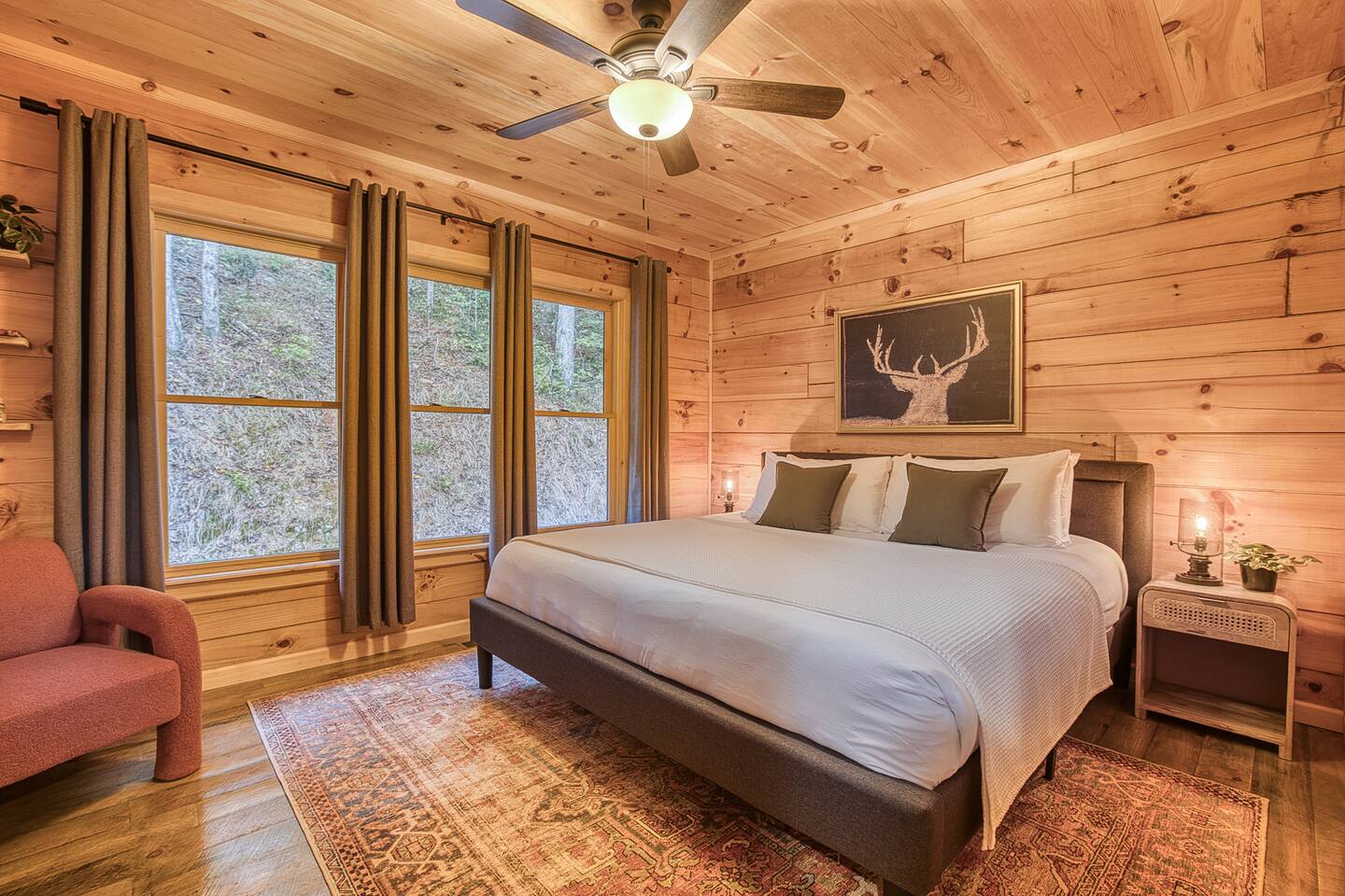 Welcome to The Buck and Horn Cabin, our brand-new adults-only luxury mountain retreat, 15 minutes from Blue Ridge and Ellijay. Nestled by a creek with a private trail to a tranquil lake, our cabin is designed for wellness, romance, and relaxation. Indulge in panoramic mountain views and unwind with amenities crafted for comfort: * Barrel sauna * Cold plunge * Hot tub * Firepit * Two king beds * Spa robes * Yoga mats and meditation deck * Creek and Lake access * Indoor fireplace * Kayak + SUP